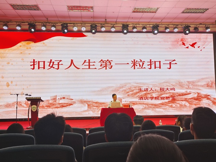 9月26日上午,酒店学院关工委邀请校关工委副主任、江苏食品药品职业技术学院原副校长程大鸣,在教学楼C115为2024级新生带来了一场意义深远的讲座——《扣好人生第一粒扣子》。