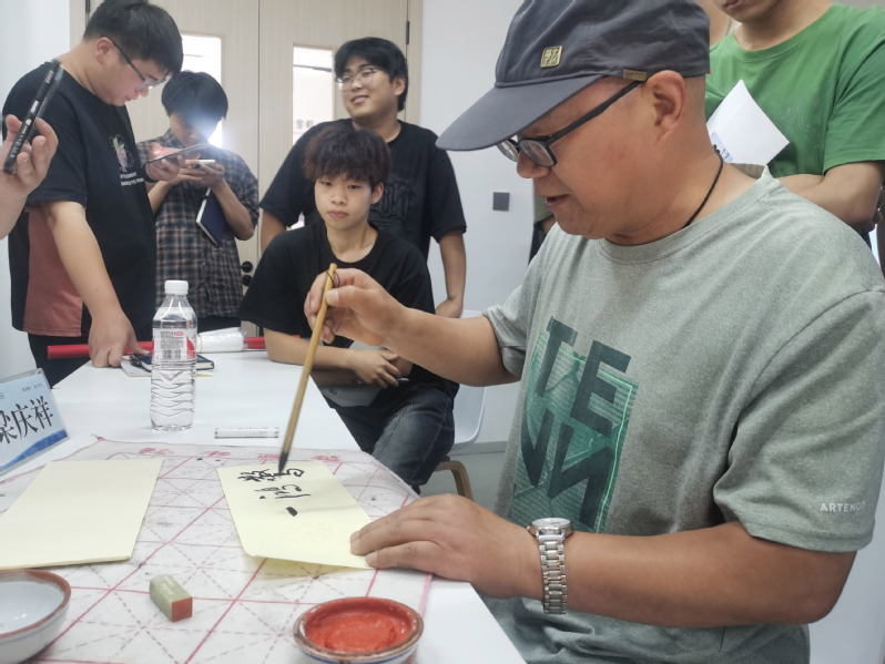 训练营第一讲由梁庆祥围绕《学生干部美育素养提升》这一主题开展,他从书法的角度带领同学们在一笔一划中感受汉字之美,在一字一词间传承中国传统文化。讲座后,他现场书写吉语作品赠予学生,祝福同学们快乐学习,幸福成长。