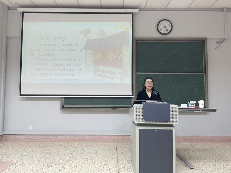 作为中国首个入选世界非物质文化遗产的节日,端午节承载着厚重的文化底蕴。王贺玲以“传统节日是什么”为引,从起源历史、民间习俗、特色美食三个维度展开讲解。她结合“屈原投江”“伍子胥奔吴”等历史典故,细致介绍了赛龙舟、挂艾草、佩香囊等习俗的文化寓意,还分享了南北端午饮食差异的趣闻,让同学们对端午文化有了立体认知。讲座中,同学们专注聆听,积极参与“端午习俗知多少”问答互动,每次精彩回应后,王贺玲都会送上五彩手绳,传递节日祝福。