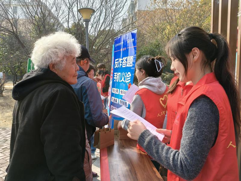 活动当天,在学院关工委成员的统筹协调下,志愿者们携手走进社区,围绕老年群体的实际需求开展多样化服务。志愿者们现场为老人们揭秘AI换脸、语音合成等前沿技术,细致讲解AI诈骗的常见套路与防范技巧;通过VR设备打造跨越时空的“云游长廊”,让银发群体足不出户即可“漫步”平遥古城的青石板巷,感受科技魅力。针对老年人使用智能设备的痛点难点,志愿者提供“一对一”手把手指导,耐心教学手机支付、视频通话、健康码查询等日常高频功能。现场设置的防诈知识有奖问答环节,吸引众多居民踊跃参与抢答,气氛热烈,有效提升了老年群体的反诈意识和自我保护能力,获得社区居民广泛好评。