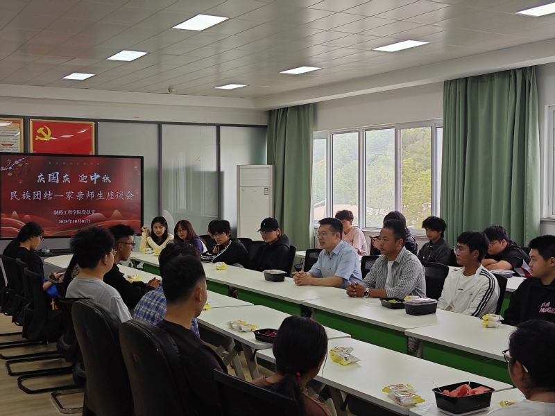 为深入学习贯彻党的二十大和二十届二中、三中全会精神,全面贯彻习近平总书记关于铸牢中华民族共同体意识的重要论述,10月1日,在国庆、中秋双节的浓厚氛围中,制药工程学院联合学院关工委于6号实训楼206会议室举办“庆国庆迎中秋,民族团结一家亲”师生座谈会。学院党总支书记朱劲松、关工委老同志代表、辅导员陈磊、索南东主以及少数民族学生代表、留校学生代表近30人参加座谈会。